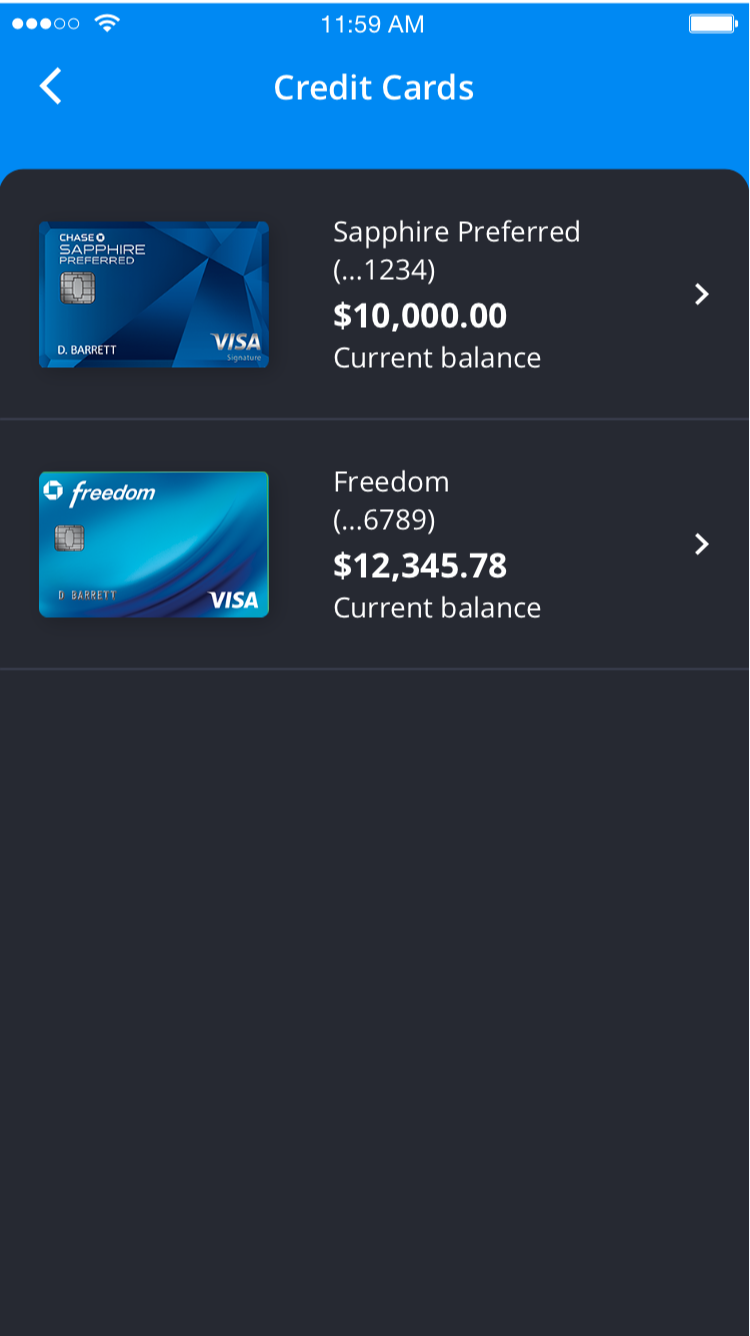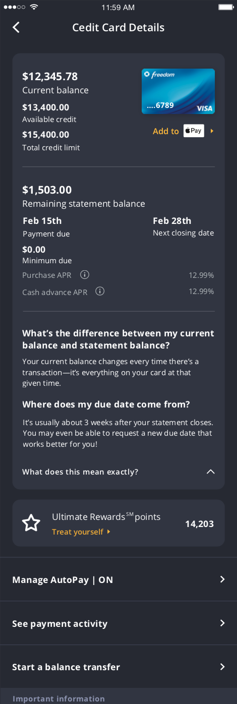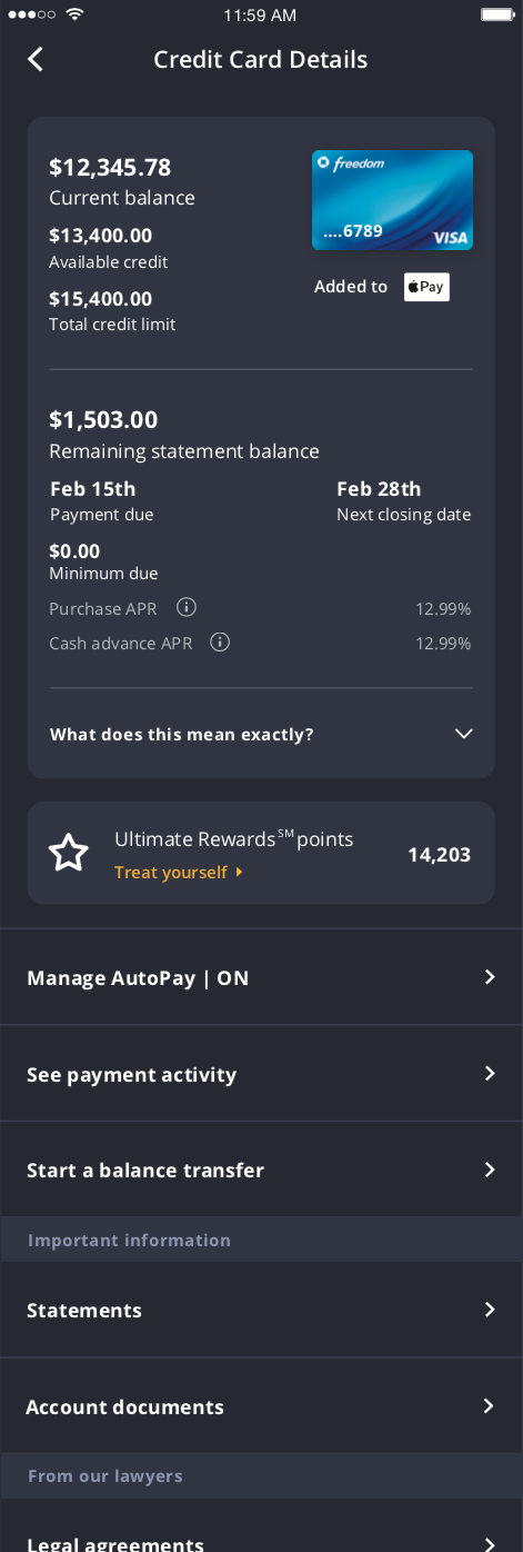 - Reskin the existing Chase credit card details page to match Finn’s visual identity