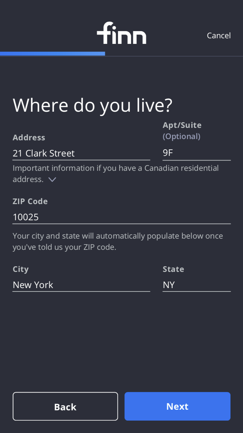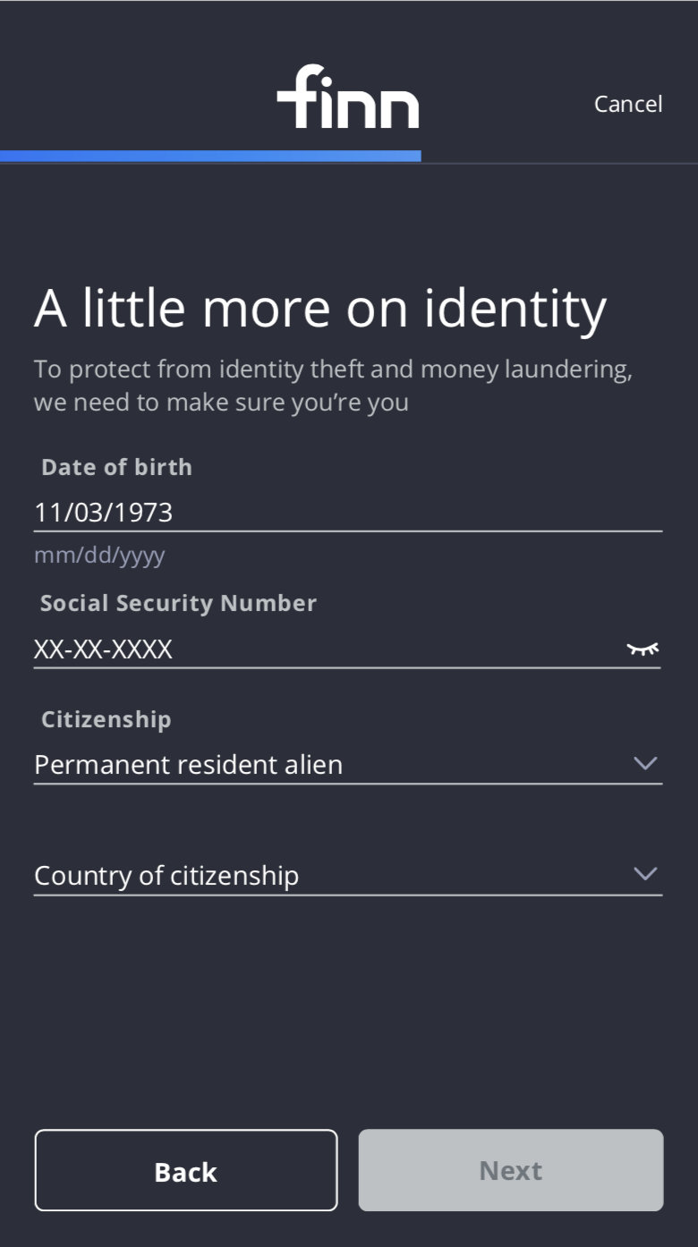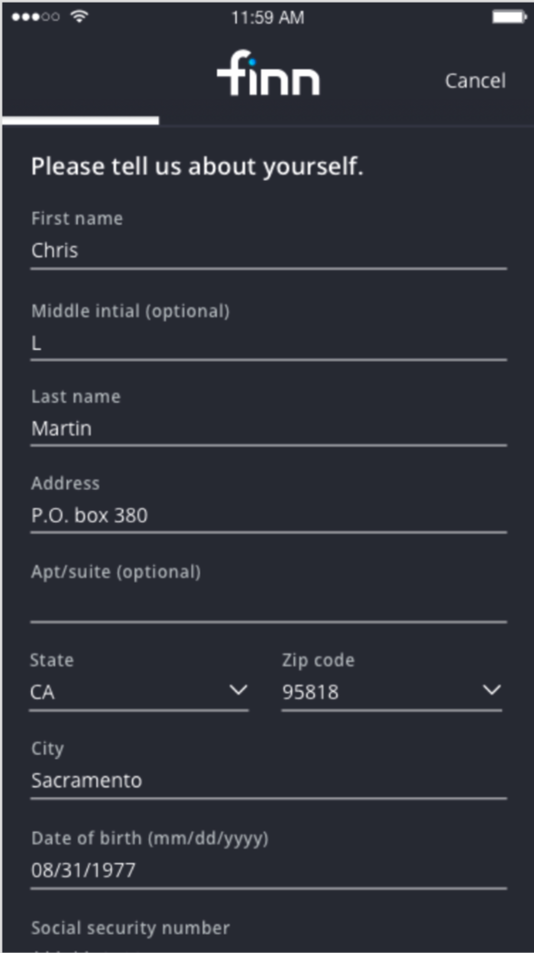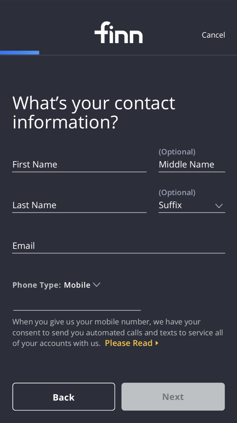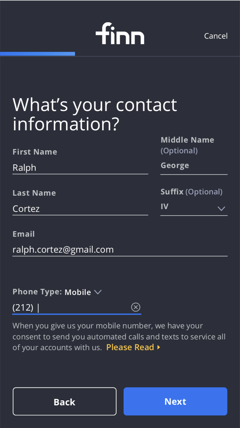 We couldn’t change the type of information gathered, but we weren’t happy with one massive page of text fields. Having the information broken out into separate screens eliminated the need to scroll, made the information more digestible, and created the sense that you were being asked to provide less information in comparison to the existing flow.