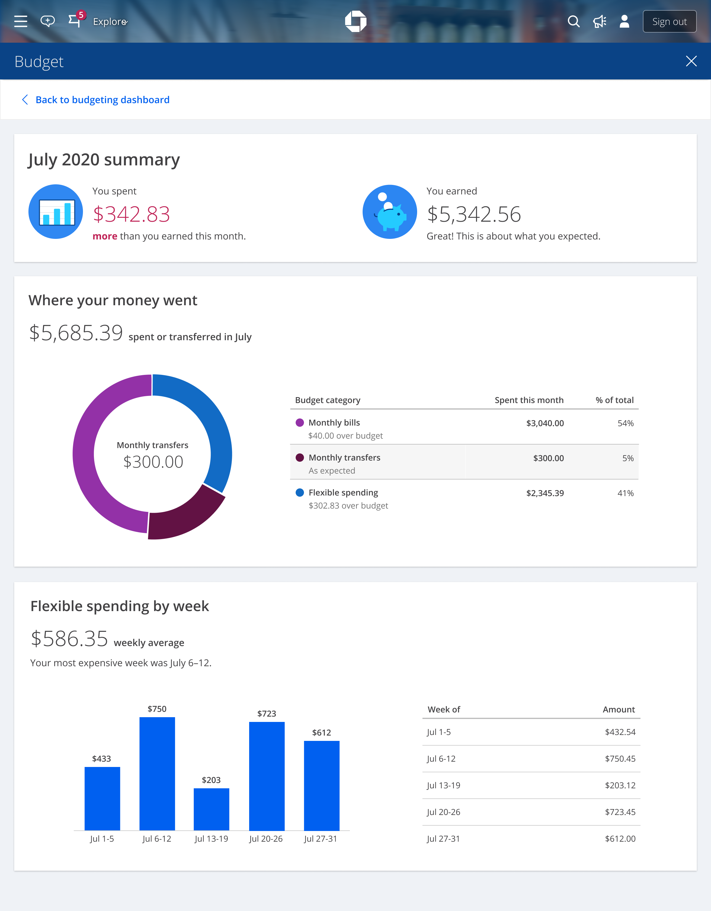 In the future, users should be able to make changes to next month’s budget, and see categorical spending.